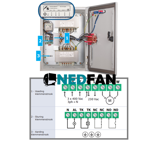Wij verkopen geen spullen voor criminele doeleinden! Traforegelaars De 5 standen traforegelaars regelen de rotatiesnelheid van monofasige, voltage-aanstuurbare motoren door de uitgangsspanning te variëren. Ze zijn uitgerust met autotransformator(en) en regelen de snelheid handmatig in vijf stappen. Ze beschikken over TK bewaking voor thermische motorbeveiliging (5 standen traforegelaars met thermische beveiliging), droge contactingang voor starten / stoppen op afstand en een 230 VAC alarmuitgang. De technologie biedt een gereguleerde uitgangsspanning met een perfecte sinusoïdale vorm. De 5 standen traforegelaars tot 7.5 ampère 230 volt zijn verkrijgbaar in een plastic behuizing, terwijl de modellen boven 7.5 ampère 230 volt verkrijgbaar zijn in een metalen behuizing. 5 standen traforegelaars voor ventilatoren Breed voedingsspanningsbereik 2.5 ampère — 20.0 ampère, 5-staps draaischakelaar voor handbediening met uit-positie, ingang – TK bewaking voor thermische motorbeveiliging, de regelaar start automatisch terug op na een stroom onderbreking, alarm output, LED-indicaties, ingang voor externe aan / uit-schakelaar, ventilator standenregeling van regelbare motoren in ventilatiesystemen, uitsluitend voor binnen gebruik.