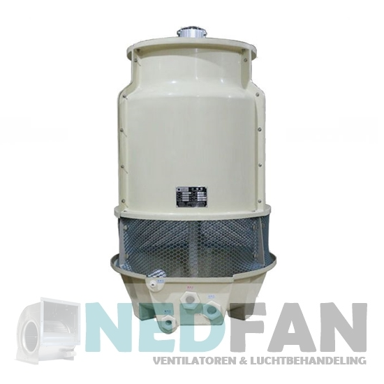 De verdampingskoeler kan worden ingezet als er een beperkte watertoevoer of geen afvoer aanwezig is. Het waterverbruik wordt door gebruik van de verdampingskoeler met meer dan 95% verminderd. Het extra stroomverbruik is verwaarloosbaar. De verdampingskoeler wordt op de speciale wateruitgang (middelste aansluiting) van de OptiClimate aangesloten. De lucht van de verdampingskoeler moet naar buiten worden afgevoerd. Het opgenomen vermogen is afhankelijk van het model. Inclusief pomp